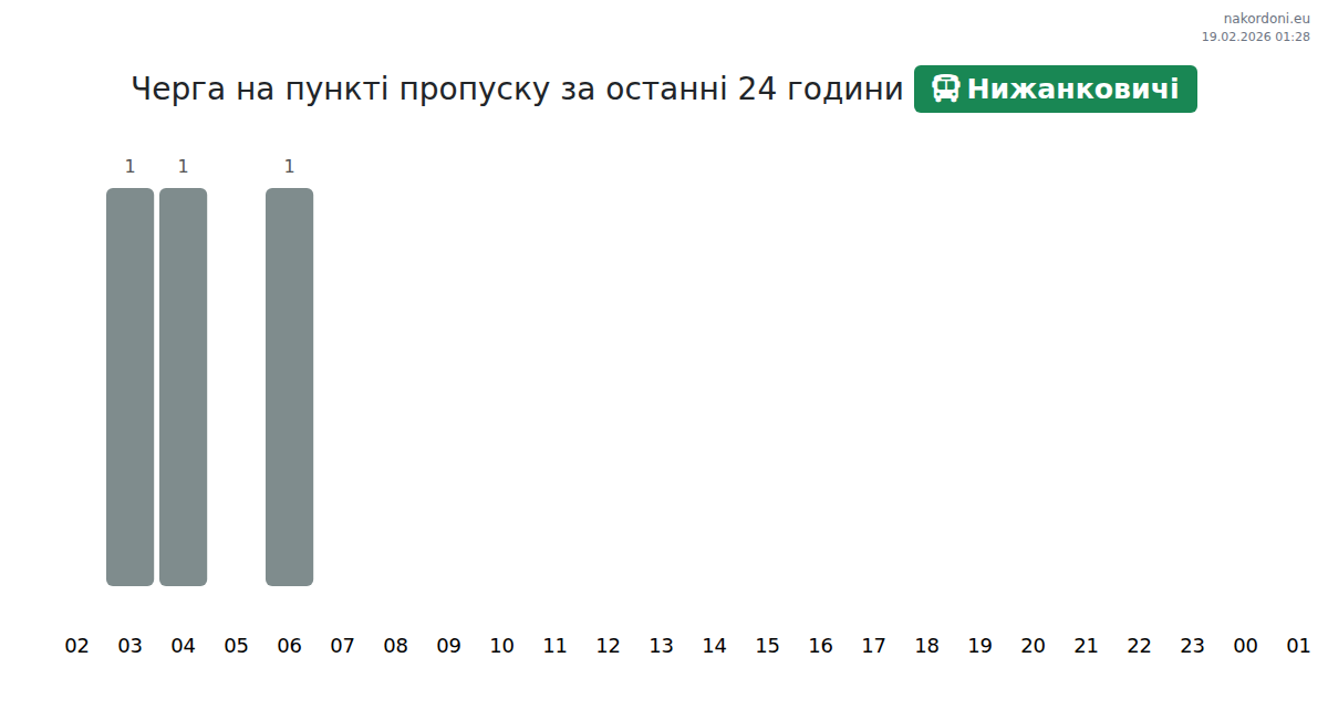 Прогнозираното време за изчакване на КПП Нижанковичи за автобуси е 15-375 минути, със средно 110 минути. Избягвайте пиковите часове: 13:00, 10:00, 03:00. Най-доброто време за преминаване: 15:00, 18:00, 21:00.