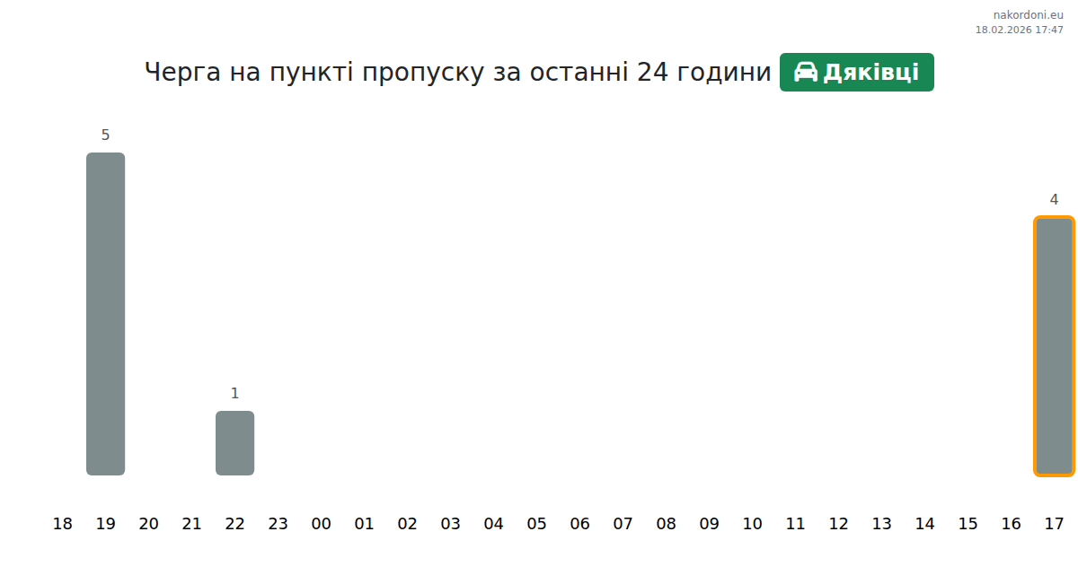 Очакваното време за чакане на пункт Дякивци е 15-123 минути. Пиковите часове са 08:00, 11:00 и 14:00, а най-доброто време за преминаване е в 10:00, 12:00 или 13:00 часа.