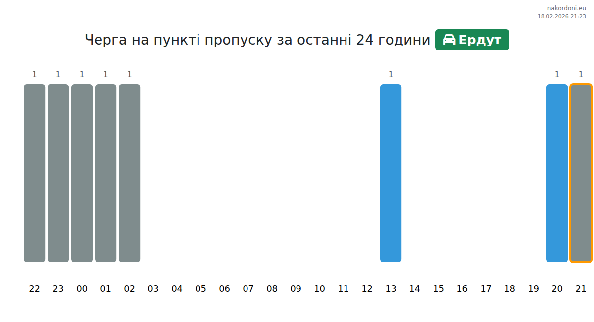 На граничния пункт Ердут, леките автомобили могат да очакват време за изчакване от 71-71 минути. Препоръчваме да избягвате пиковите часове между 12:00 и 14:00. За по-кратки опашки, пресечете между 15:00 и 17:00.