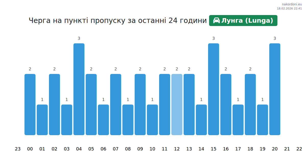 За периода 17.02.2026 от 00:00 до 23:59 на границата на КПП Лунга (Lunga) - лек автомобил бяха записани следните ключови моменти: