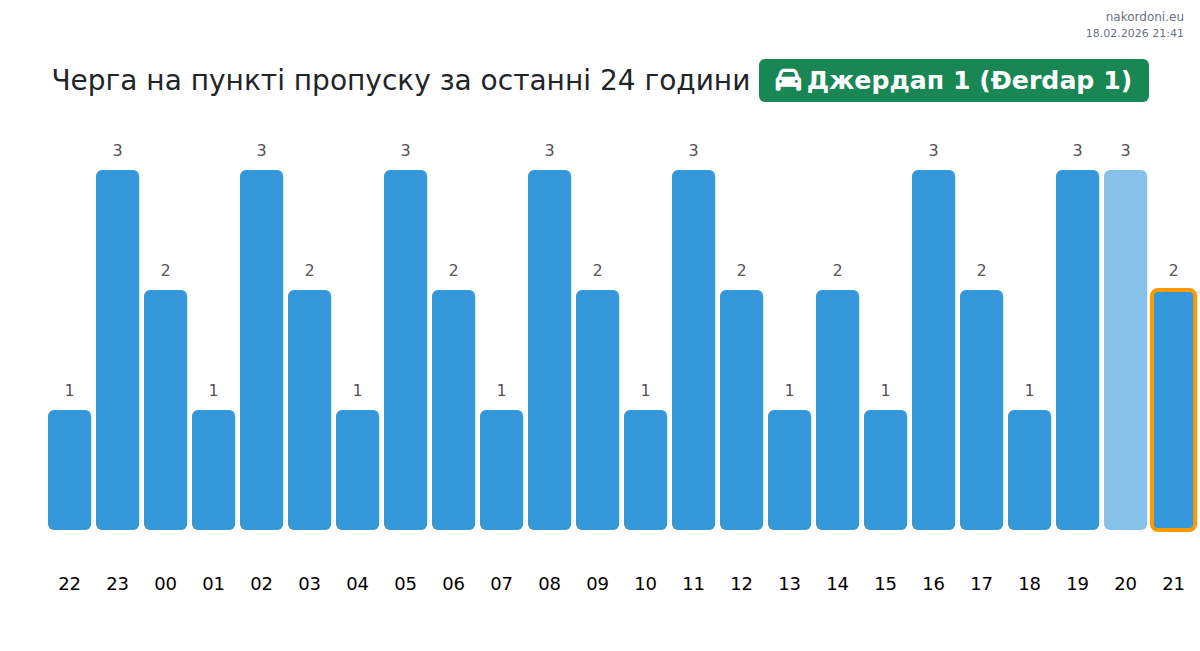 За да избегнете дълги опашки на границата на КПП Джердап 1 (Đerdap 1) - лек автомобил, препоръчваме да планирате преминаването на границата в часовете с най-малко натоварване. Според данните от изминалия ден, най-малкият брой превозни средства е наблюдаван между 1:00 и 4:00 часа. Това е идеалното време за преминаване на границата, за да спестите време и да избегнете закъснения.