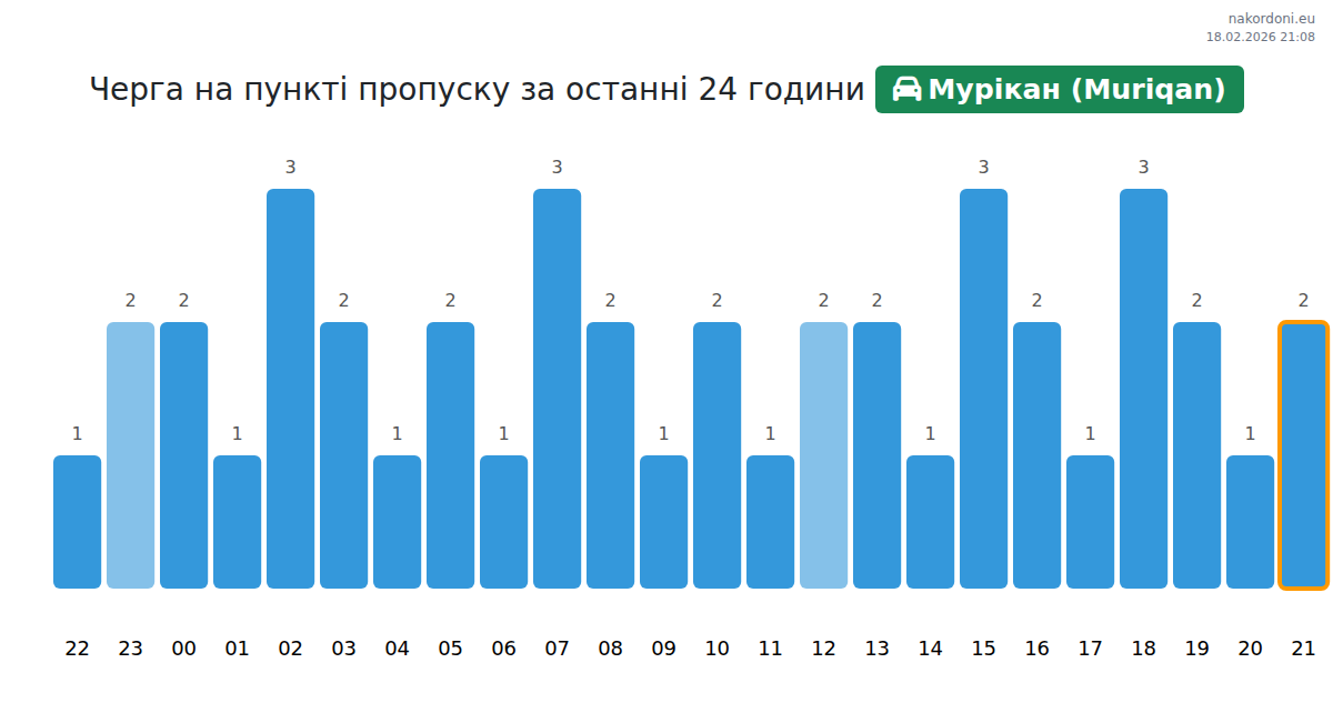 За периода 17.02.2026 от 00:00 до 23:59 на границата на КПП Мурикан (Muriqan) - лек автомобил бяха записани следните ключови моменти: