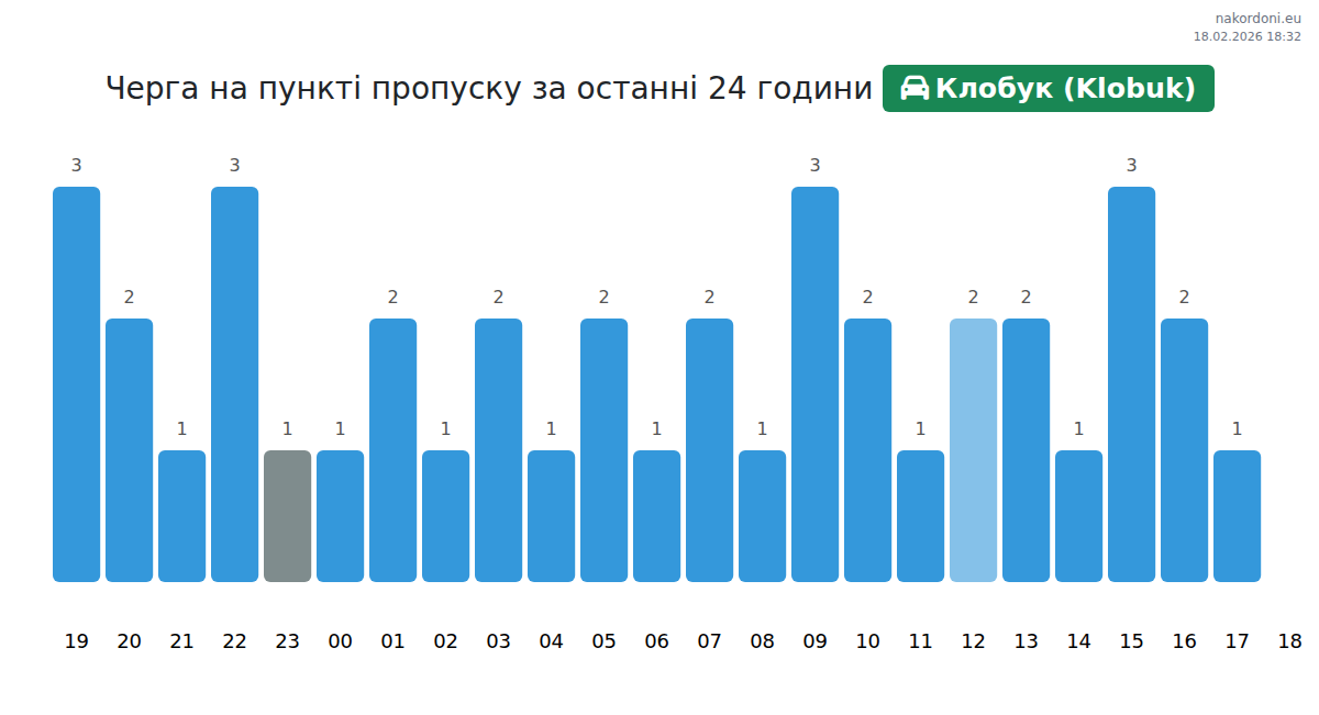 За периода 17.02.2026 от 00:00 до 23:59 на границата на КПП Клобук (Klobuk) - лек автомобил бяха записани следните ключови моменти: