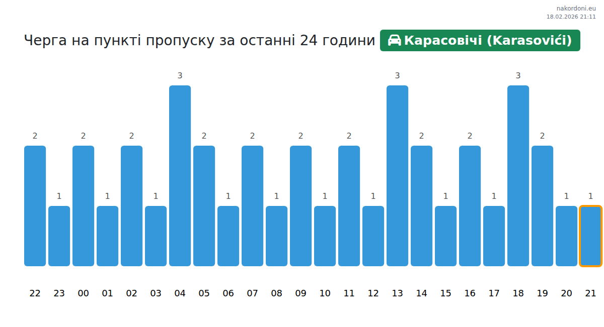 Анализ на опашката на границата на КПП Карасовичи (Karasovići) - лек автомобил за вчера