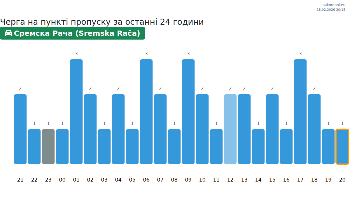 Анализ на опашката на границата на КПП Сремска Рача (Sremska Rača) - лек автомобил за вчера