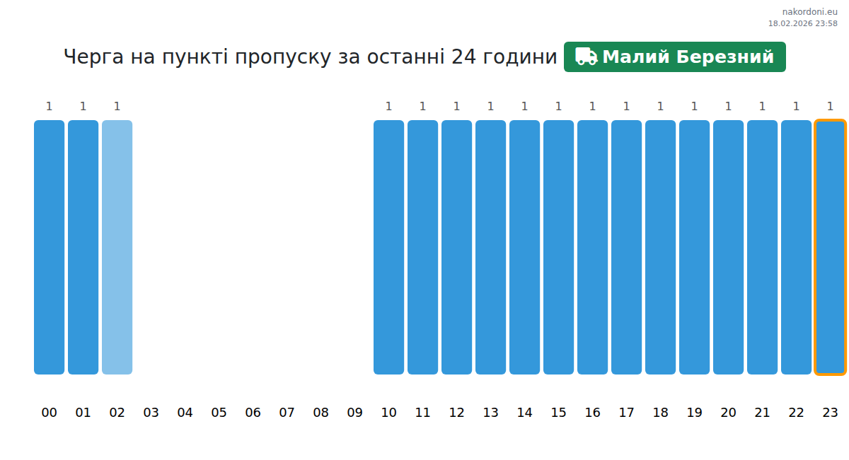 За да избегнете дълги опашки на границата на КПП Малий Березний - товарен транспорт (до 3,5 тона), препоръчваме да планирате преминаването на границата в часовете с най-малко натоварване. Според данните от изминалия ден, най-малкият брой превозни средства е наблюдаван между 4:00 и 5:00 часа. Това е идеалното време за преминаване на границата, за да спестите време и да избегнете закъснения.