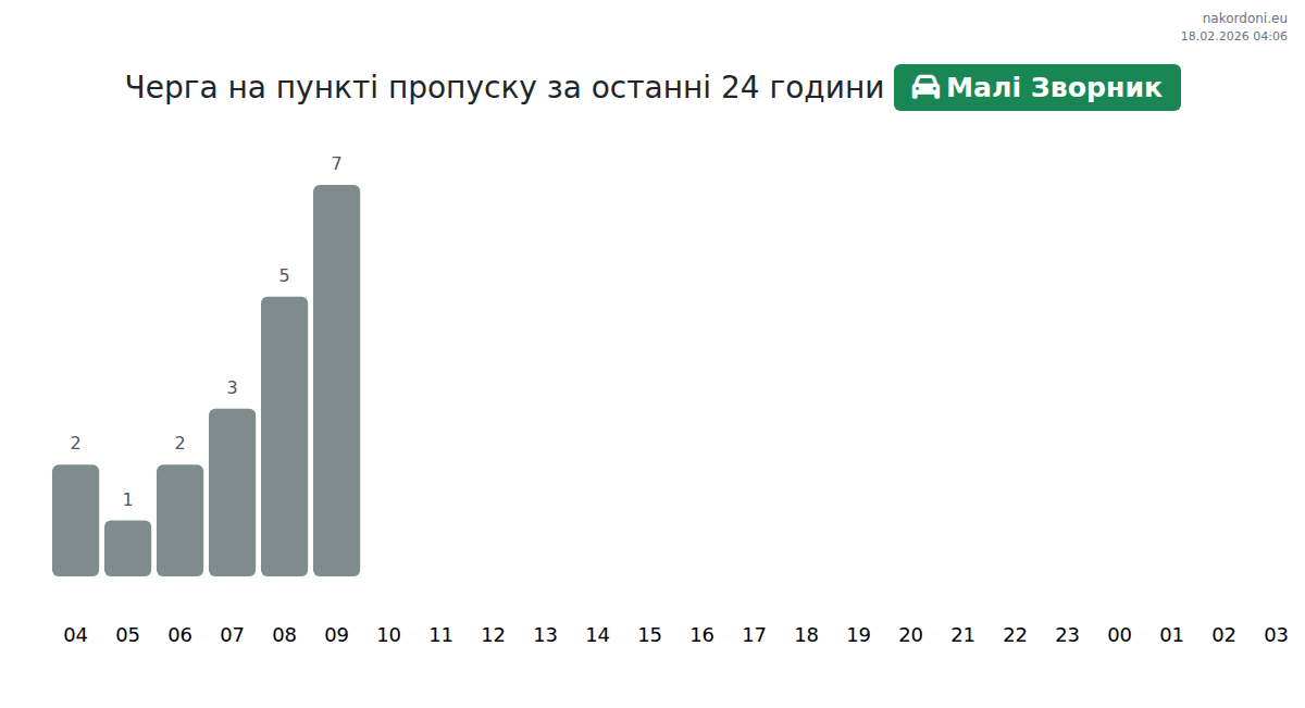 Времето за чакане на Мали Зворник е 71-131 мин. Пиковите часове са 11:00, 12:00 и 15:00. Най-добре е да преминете в 20:00, 21:00 или 23:00 ч.