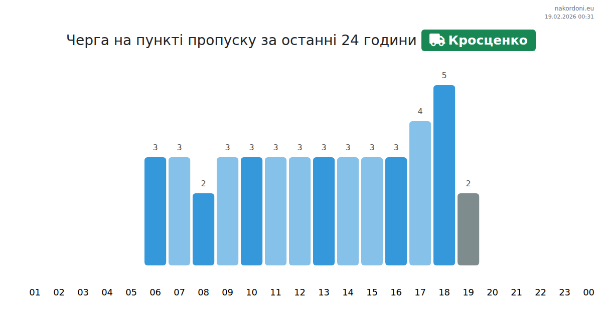 За да избегнете дълги опашки на границата на КПП Кросценко - товарен транспорт (до 7,5 тона), препоръчваме да планирате преминаването на границата в часовете с най-малко натоварване. Според данните от изминалия ден, най-малкият брой превозни средства е наблюдаван между 5:00 и 7:00 часа. Това е идеалното време за преминаване на границата, за да спестите време и да избегнете закъснения.