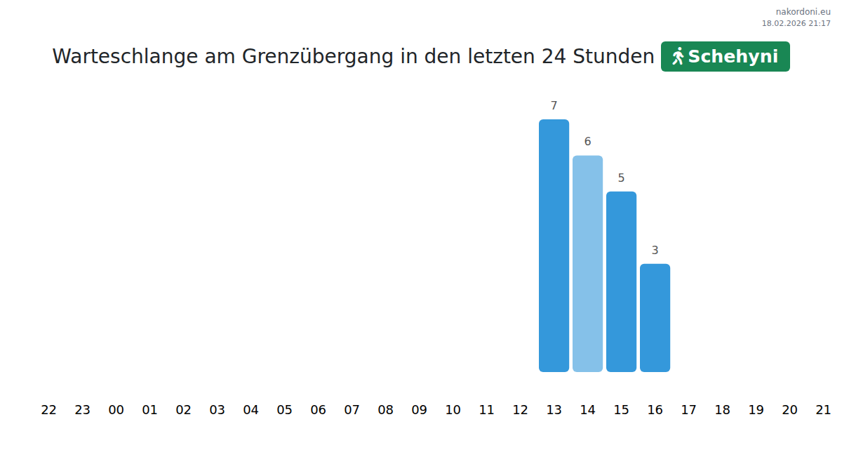 Im Zeitraum 17.02.2026 von 00:00 bis 23:59 an der Grenze am Grenzübergang Schehyni - Fußgänger wurden folgende wichtige Momente aufgezeichnet: