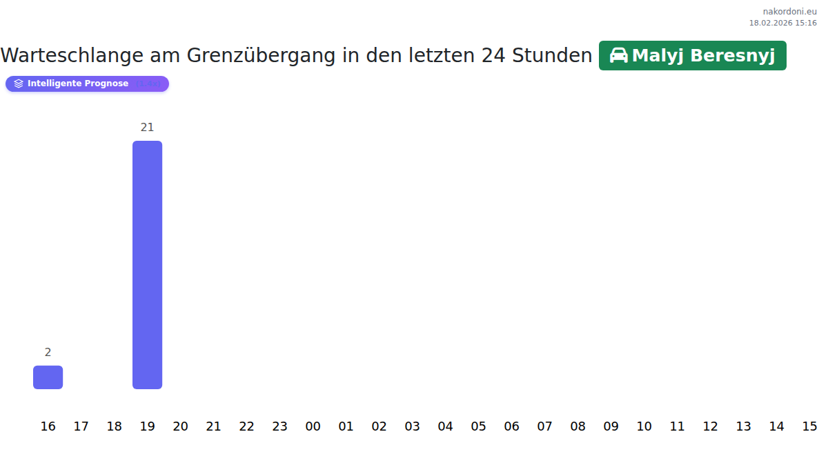 Analyse der Warteschlangen an der Grenze am Grenzübergang Malyj Beresnyj - Personenkraftwagen für gestern