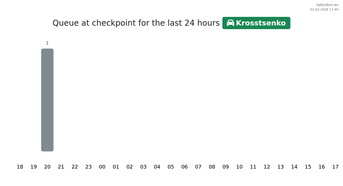 At Krosstsenko checkpoint, passenger car wait times range from 15 to 855 minutes. For a smoother crossing, avoid peak hours at 05:00, 19:00, and 14:00. The best times to cross are 17:00, 18:00, and 20:00.