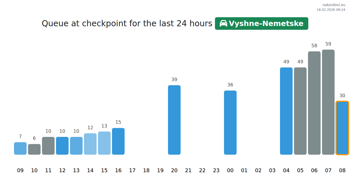 Plan your trips in advance using up-to-date border queue information at the Vyshne-Nemetske - passenger car checkpoint to make your crossing fast and convenient. Pay special attention to these hours to avoid peak times and reduce waiting times.