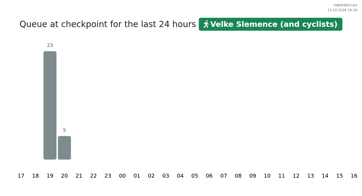 To avoid long queues at the Velke Slemence (and cyclists) - pedestrian checkpoint, it is recommended to plan your border crossing during the least busy hours. According to the data from the past day, the lowest number of vehicles was observed between 8:00 and 12:00 hours. This is the ideal time to cross the border, saving time and avoiding delays.