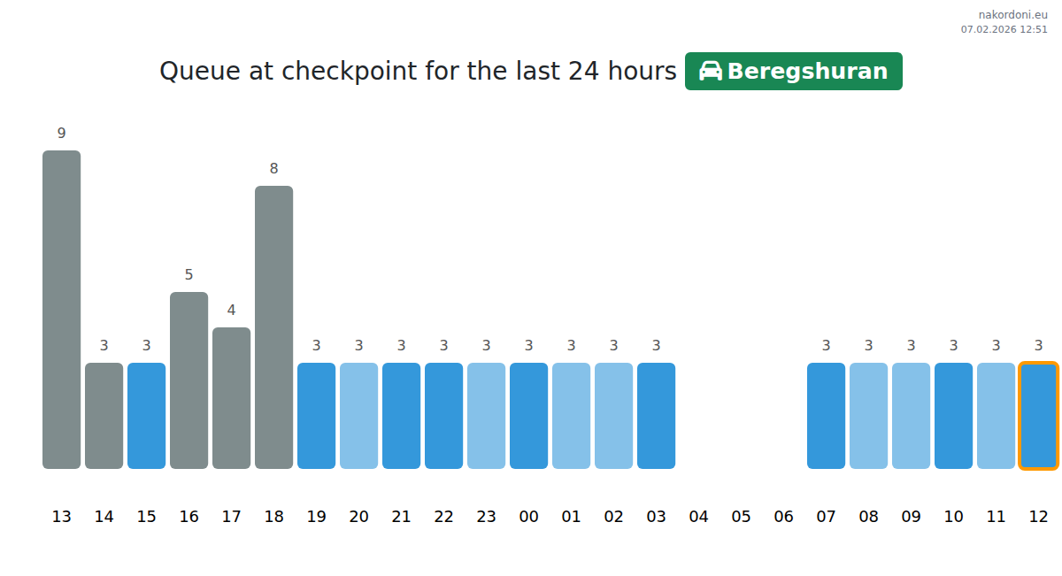 Plan your trips in advance using up-to-date border queue information at the Beregshuran - passenger car checkpoint to make your crossing fast and convenient. Pay special attention to these hours to avoid peak times and reduce waiting times.