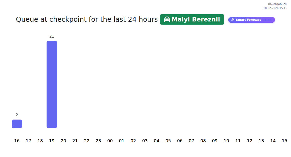 At Malyi Bereznii, expect wait times for passenger cars to range from 15-129 minutes. For shorter queues, avoid peak hours around 20:00, 01:00, and 17:00. The best times to cross are typically 09:00, 12:00, and 15:00.