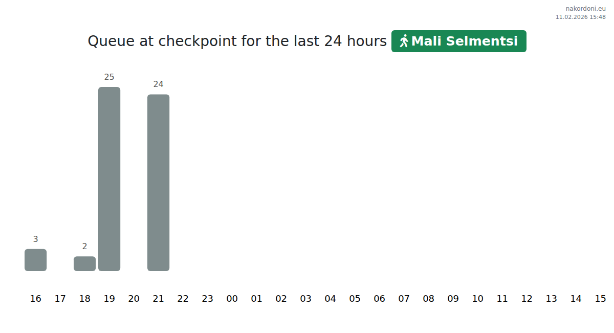 Plan your trips in advance using up-to-date border queue information at the Mali Selmentsi - pedestrian checkpoint to make your crossing fast and convenient. Pay special attention to these hours to avoid peak times and reduce waiting times.