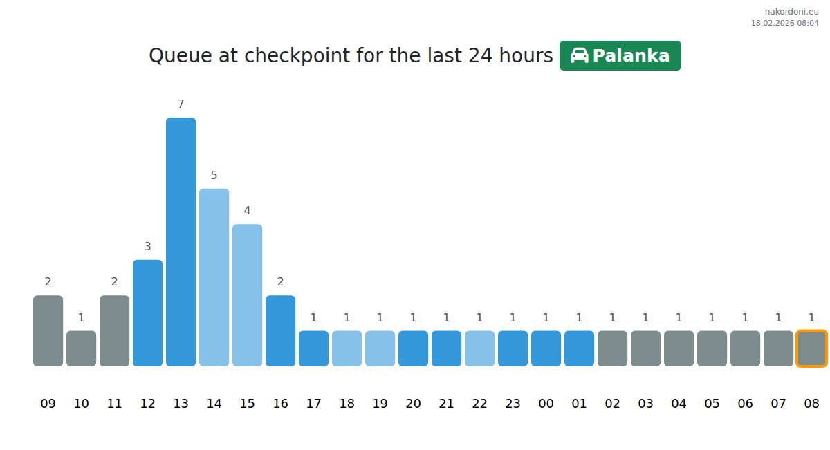 Plan your trips in advance using up-to-date border queue information at the Palanka - passenger car checkpoint to make your crossing fast and convenient. Pay special attention to these hours to avoid peak times and reduce waiting times.