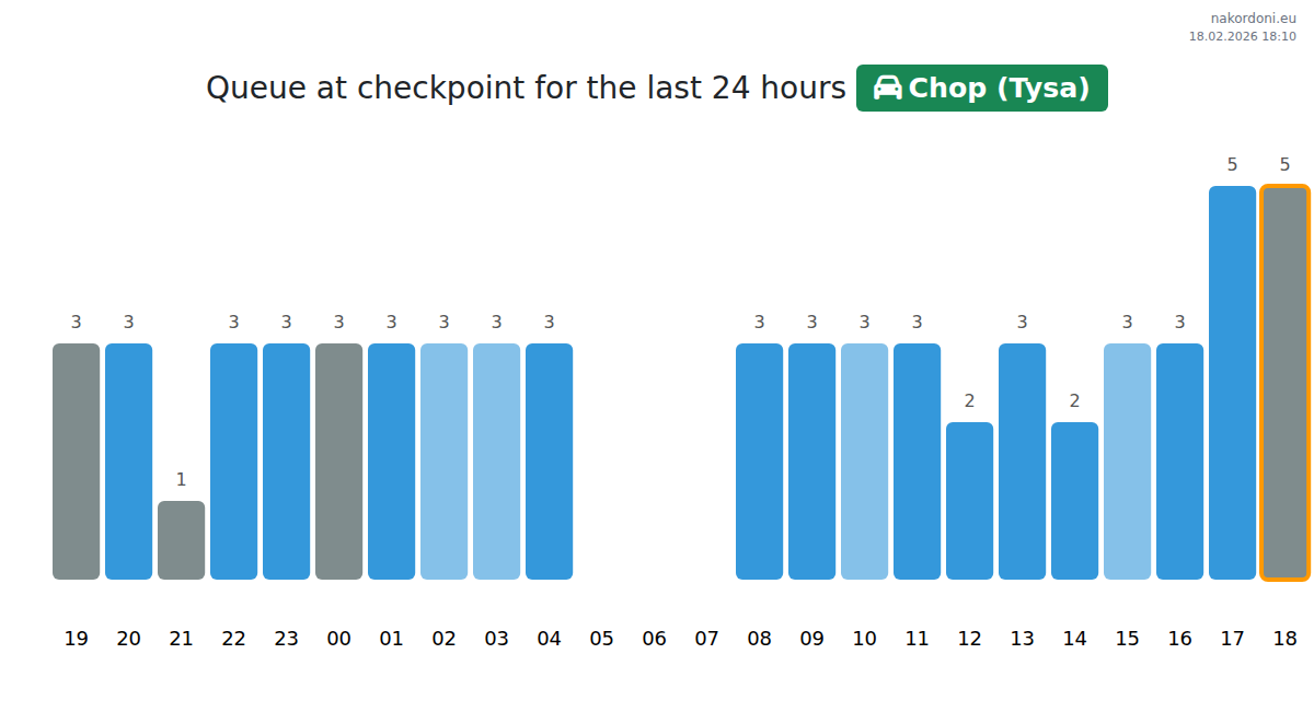 Plan your trips in advance using up-to-date border queue information at the Chop (Tysa) - passenger car checkpoint to make your crossing fast and convenient. Pay special attention to these hours to avoid peak times and reduce waiting times.