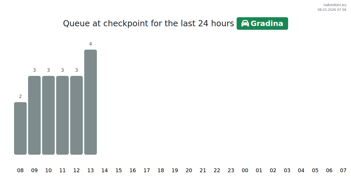 Plan your trips in advance using up-to-date border queue information at the Gradina - passenger car checkpoint to make your crossing fast and convenient. Pay special attention to these hours to avoid peak times and reduce waiting times.