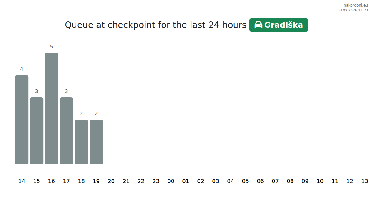 Plan your trips in advance using up-to-date border queue information at the Gradiška - passenger car checkpoint to make your crossing fast and convenient. Pay special attention to these hours to avoid peak times and reduce waiting times.