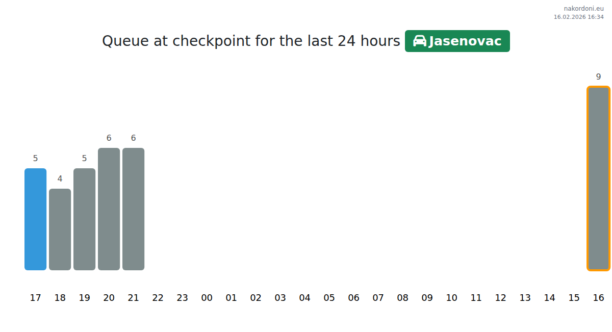 Plan your trips in advance using up-to-date border queue information at the Jasenovac - passenger car checkpoint to make your crossing fast and convenient. Pay special attention to these hours to avoid peak times and reduce waiting times.