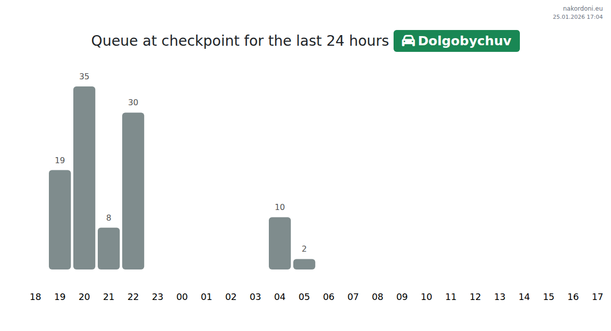 At the Dolgobychuv checkpoint, passenger car wait times are predicted to range from 15 to 2215 minutes. To minimize delays, avoid peak hours around 23:00, 02:00, and 20:00. The shortest queues are expected at 08:00, 12:00, and 16:00.
