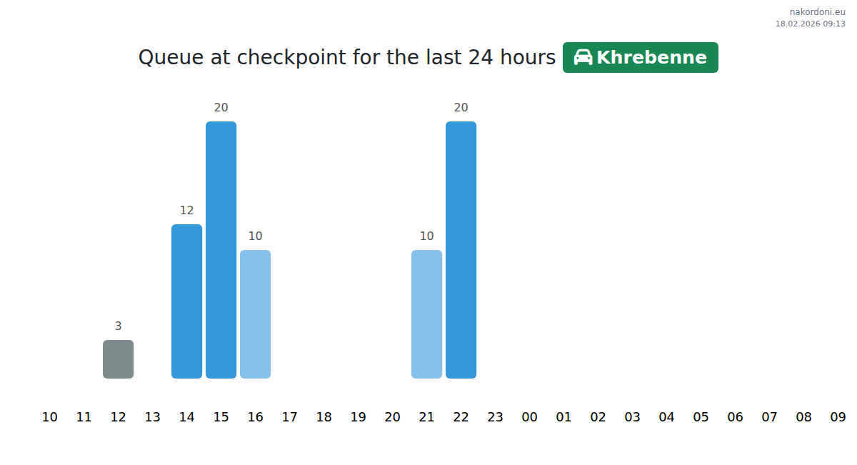 Plan your trips in advance using up-to-date border queue information at the Khrebenne - passenger car checkpoint to make your crossing fast and convenient. Pay special attention to these hours to avoid peak times and reduce waiting times.