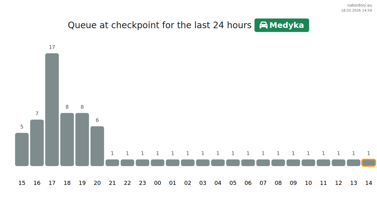 Plan your trips in advance using up-to-date border queue information at the Medyka - passenger car TaxFREE (Red line) checkpoint to make your crossing fast and convenient. Pay special attention to these hours to avoid peak times and reduce waiting times.