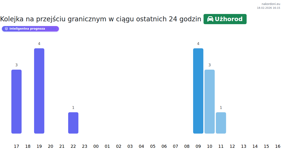 Analiza kolejek na granicy na punkcie kontrolnym Użhorod - samochód osobowy za wczoraj