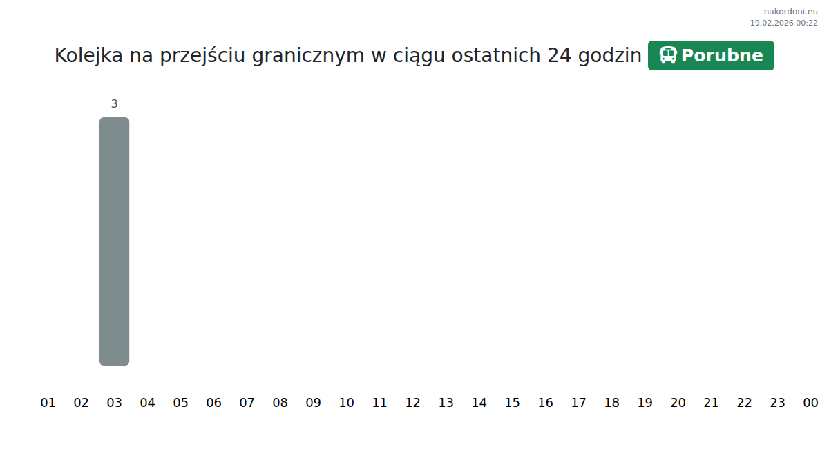 Na przejściu Porubne przewidywany czas oczekiwania dla autobusów wynosi 15-255 minut. Unikaj przekraczania granicy około 01:00, 13:00 i 14:00 z powodu szczytowego obciążenia. Najlepsze godziny to 15:00, 16:00 i 17:00.