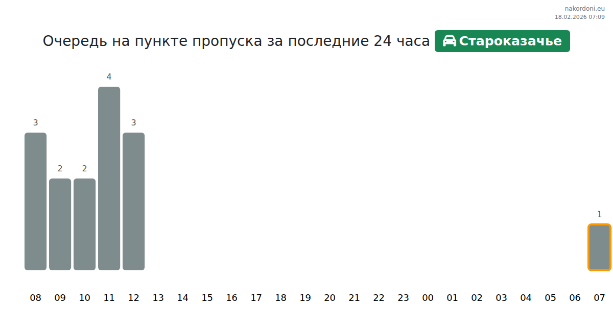 За период 17.02.2026 с 00:00 до 23:59 на границе на пункте пропуска Староказачье - легковой автомобиль были зафиксированы следующие ключевые моменты: