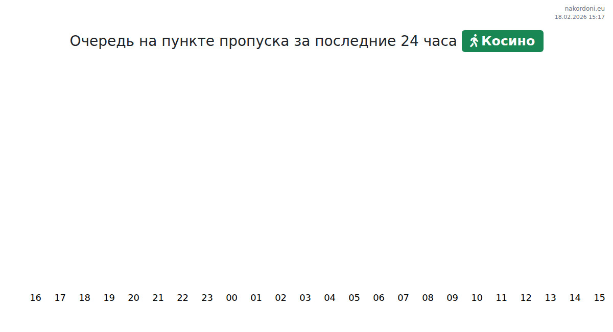 На КПП Косино ожидайте очереди для транспортных средств 15-75 минут. Избегайте пиковых часов: 12:00, 13:00, 10:00. Лучшее время для пересечения — 14:00, 15:00, 16:00.
