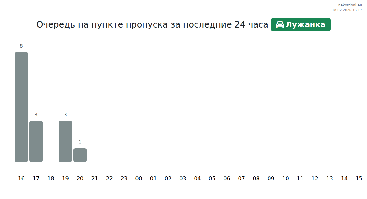 На пункте «Лужанка» ожидаемое время ожидания составляет от 15 до 87 минут, в среднем 43 минуты. Часы пик, которых следует избегать: 04:00, 03:00, 13:00. Лучшее время для пересечения — 21:00, 00:00 и 05:00.