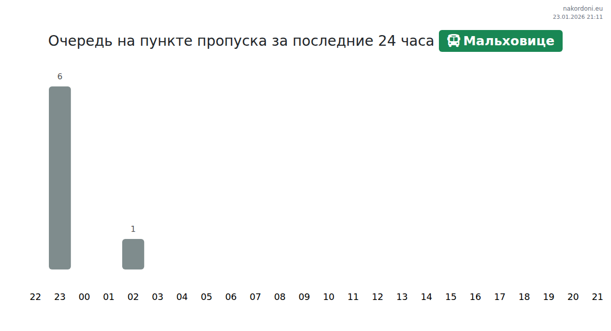 На пункте пропуска Мальховице время ожидания для автобусов колеблется от 15 до 7215 минут. Рекомендуется избегать пиковых часов: 03:00, 09:00 и 16:00. Лучшее время для пересечения границы – около 17:00, 19:00 или 20:00.