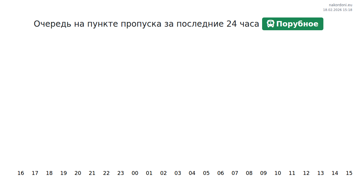 На КПП Порубное прогнозируемое время ожидания для автобусов составляет 15-255 минут. Избегайте пересечения границы около 01:00, 13:00 и 14:00 из-за пиковой нагрузки. Лучшее время для проезда с короткими очередями: 15:00, 16:00 и 17:00.