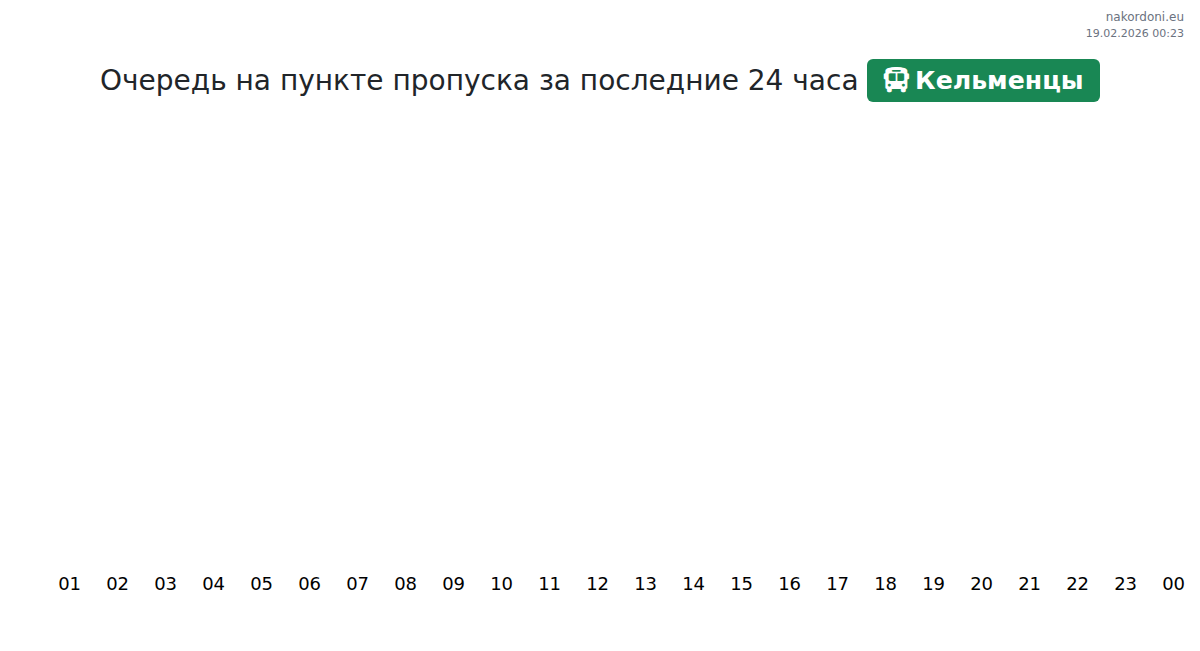 На пункте пропуска Кельменцы ожидаемое время ожидания для автобусов составляет 15 минут. Пиковые часы нагрузки прогнозируются на 13:00, 14:00 и 15:00. Лучшее время для быстрого пересечения границы — период с 16:00 до 18:00.