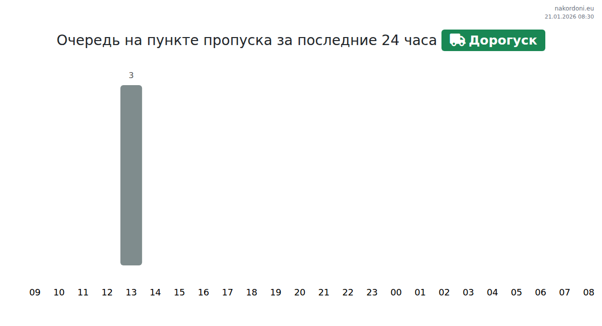 Чтобы избежать длинных очередей на границе на пункте пропуска Дорогуск - грузовой транспорт, рекомендуем планировать пересечение границы в часы наименьшей нагрузки. Согласно данным за прошлые сутки, наименьшее количество автомобилей наблюдалось между 2:00 и 5:00 часами. Это идеальное время для пересечения границы, чтобы сэкономить время и избежать задержек.