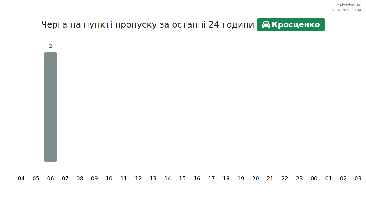На пункті пропуску Кросценко час очікування для легкових автомобілів коливається від 15 до 855 хвилин. Щоб уникнути довгих черг, оминайте години пік: 05:00, 19:00 та 14:00. Найкращий час для перетину кордону – 17:00, 18:00 та 20:00.