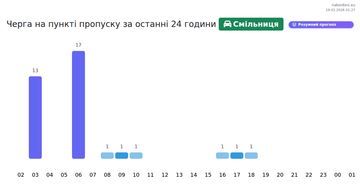 За період 17.02.2026 з 00:00 по 23:59 на кордоні на пункті пропуску Смільниця - авто були зафіксовані наступні ключові моменти: