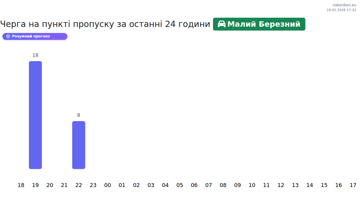 За період 17.02.2026 з 00:00 по 23:59 на кордоні на пункті пропуску Малий Березний - авто були зафіксовані наступні ключові моменти: