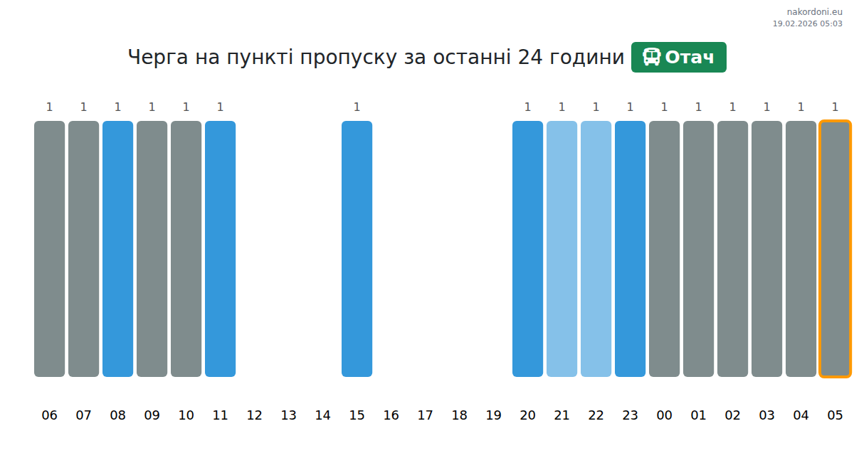 Аналіз черги на кордоні на пункті пропуску Отач - автобус за вчора