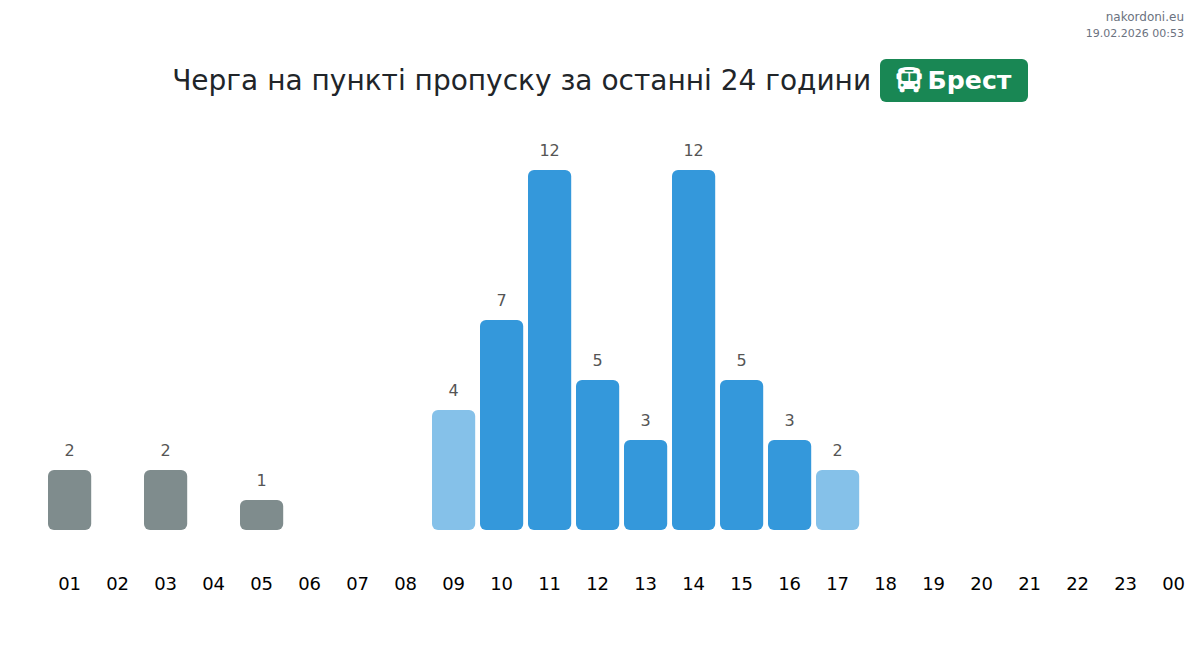 За період 17.02.2026 з 00:00 по 23:59 на кордоні на пункті пропуску Брест - авто були зафіксовані наступні ключові моменти: