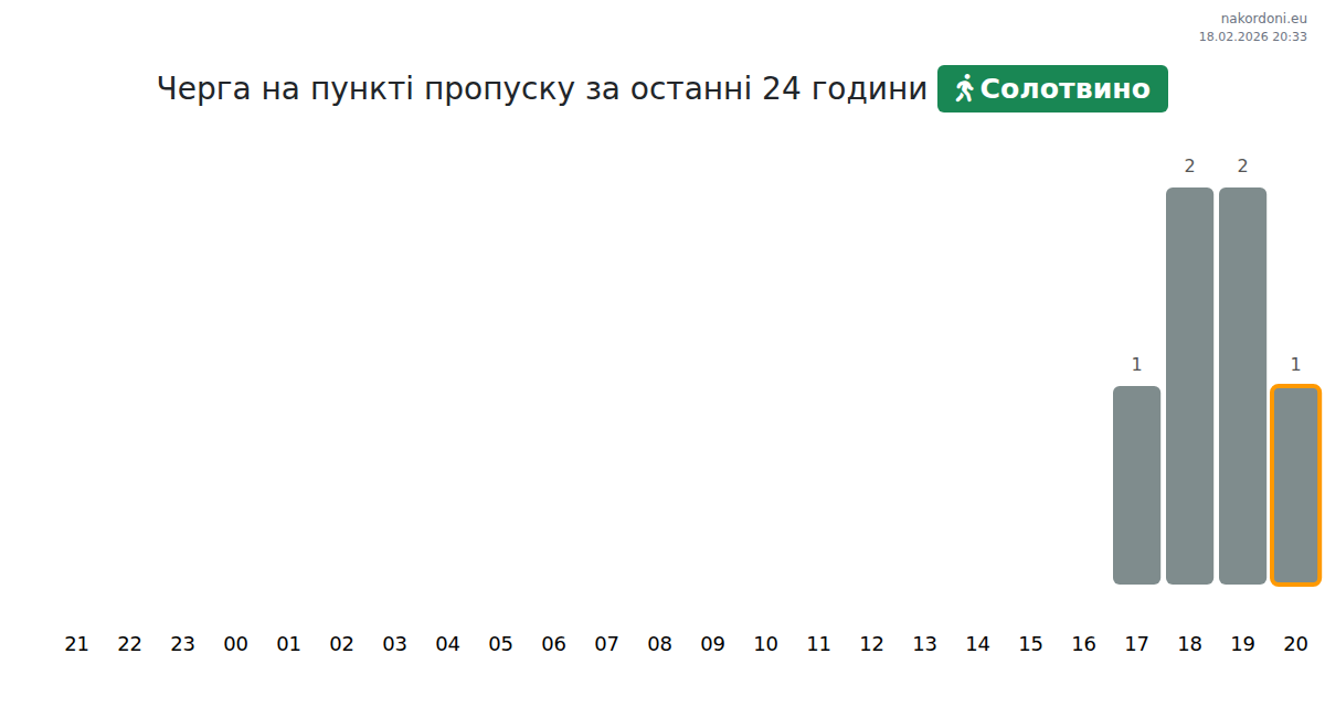 Аналіз черги на кордоні на пункті пропуску Солотвино - пішохід за вчора