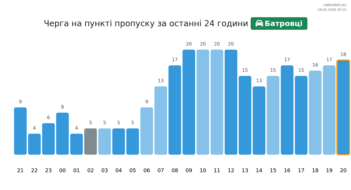 Для уникнення довгих черг на кордоні на пункті пропуску Батровці - авто, рекомендуємо планувати перетин кордону в години найменшого навантаження. Згідно з даними за минулу добу, найменша кількість автомобілів спостерігалася між 3:00 та 8:00 годинами. Це ідеальний час для перетину кордону, щоб зекономити час і уникнути затримок.