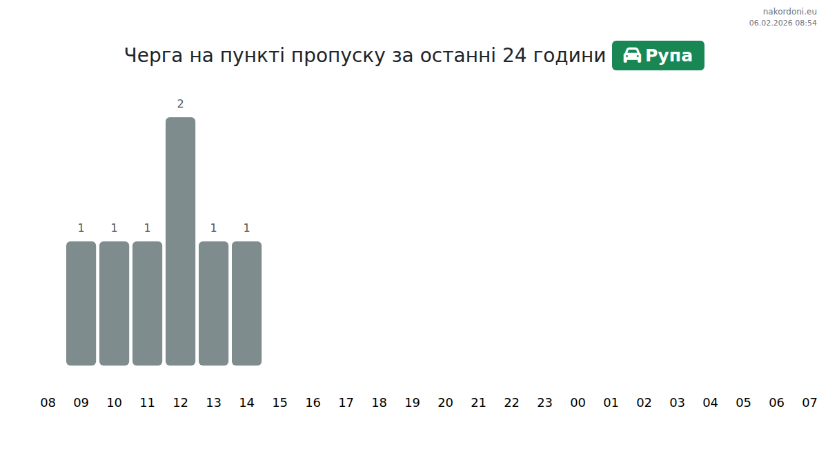 На Рупі час очікування для легкових автомобілів становить 71-77 хвилин. Уникайте пікових годин о 10:00, 11:00 та 13:00. Найкоротші черги очікуються з 15:00 до 17:00.