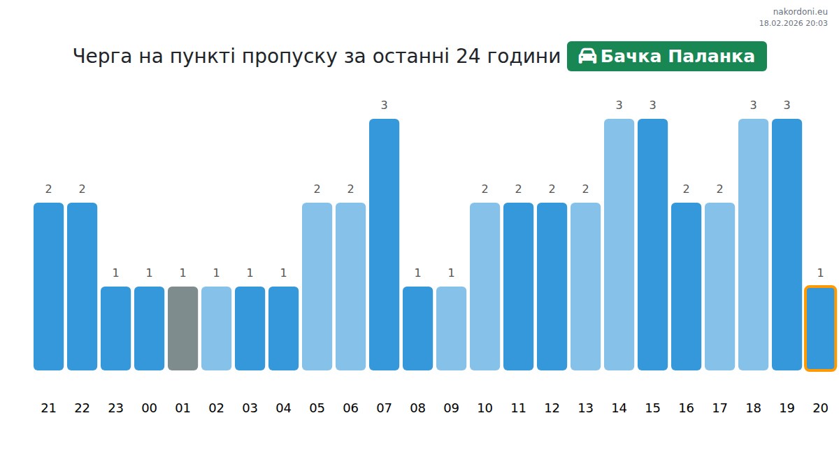 Для уникнення довгих черг на кордоні на пункті пропуску Бачка Паланка - авто, рекомендуємо планувати перетин кордону в години найменшого навантаження. Згідно з даними за минулу добу, найменша кількість автомобілів спостерігалася між :00 та 1:00 годинами. Це ідеальний час для перетину кордону, щоб зекономити час і уникнути затримок.