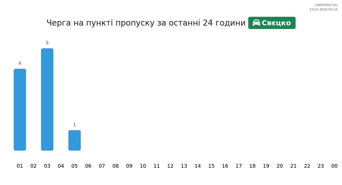 Для уникнення довгих черг на кордоні на пункті пропуску Свєцко - легковий автомобіль, рекомендуємо планувати перетин кордону в години найменшого навантаження. Згідно з даними за минулу добу, найменша кількість автомобілів спостерігалася між 1:00 та 3:00 годинами. Це ідеальний час для перетину кордону, щоб зекономити час і уникнути затримок.