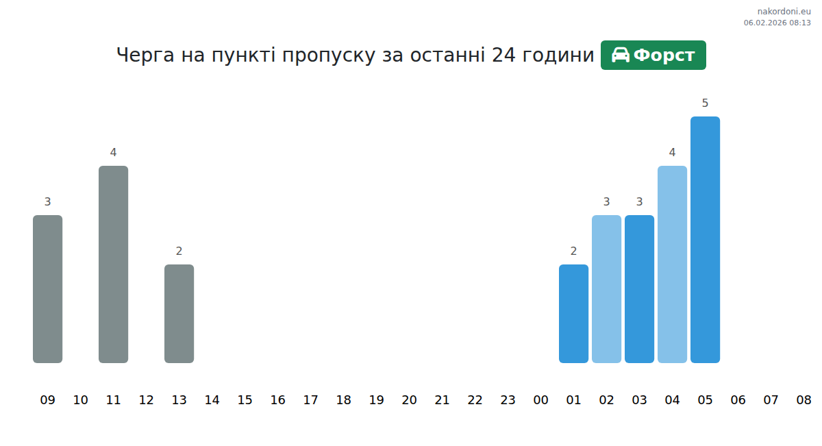 На пункті пропуску Форст, очікуйте часу очікування 15-45 хвилин для легкових автомобілів. Уникайте пікових годин о 22:00, 06:00 та 10:00. Найкращий час для перетину — 17:00, 19:00 та 23:00, щоб мінімізувати затримки.