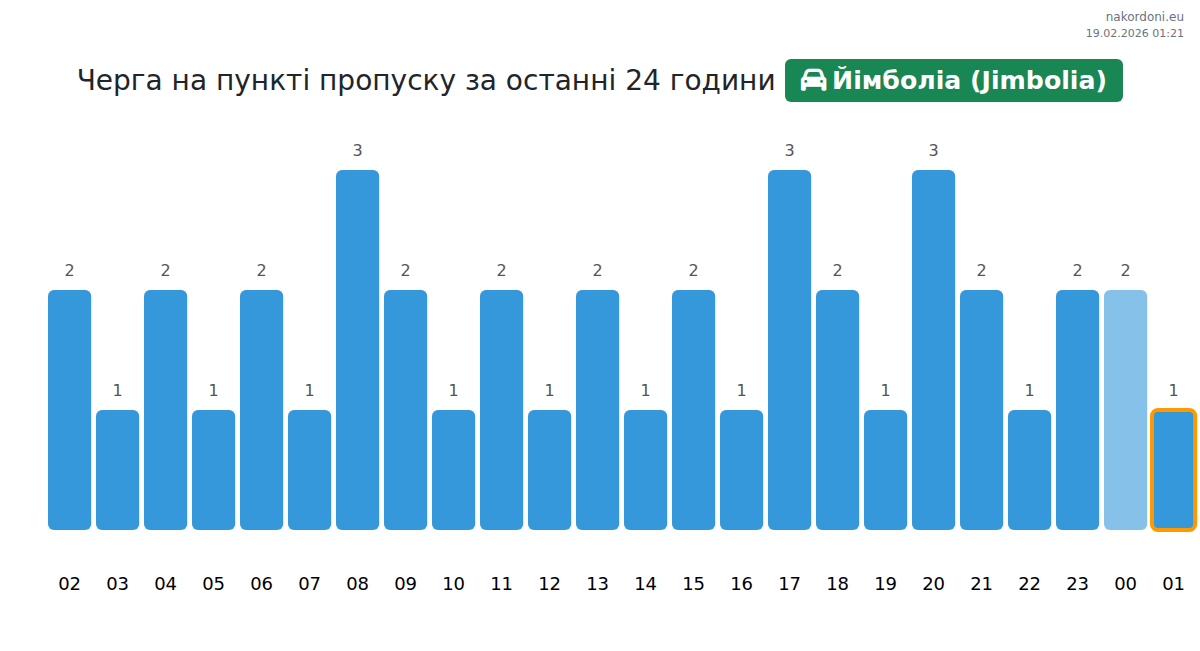 Аналіз черги на кордоні на пункті пропуску Йімболіа (Jimbolia) - легковий автомобіль за вчора