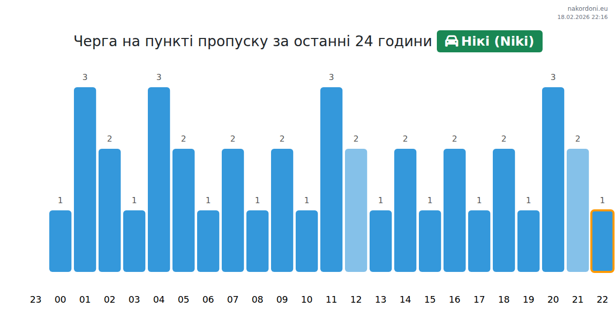 Аналіз черги на кордоні на пункті пропуску Нікі (Niki) - легковий автомобіль за вчора